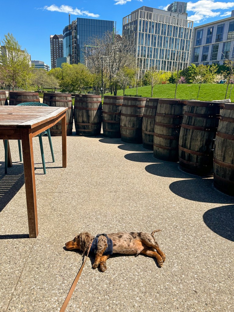 Lamplighter has been one of my parents’ favorite breweries since long before I was a weenie-shaped glimmer in my mother’s eyes. When they opened their new space in Cambridge Crossing, my parents were thrilled! The outdoor patio is dog friendly. It’s not a huge space, but it’s comfortable. The brewery is also in a large park which is great for stretching those legs. There is an off-leash dog park on the opposite end of the big park at the corner of Jacobs St. and Child St.