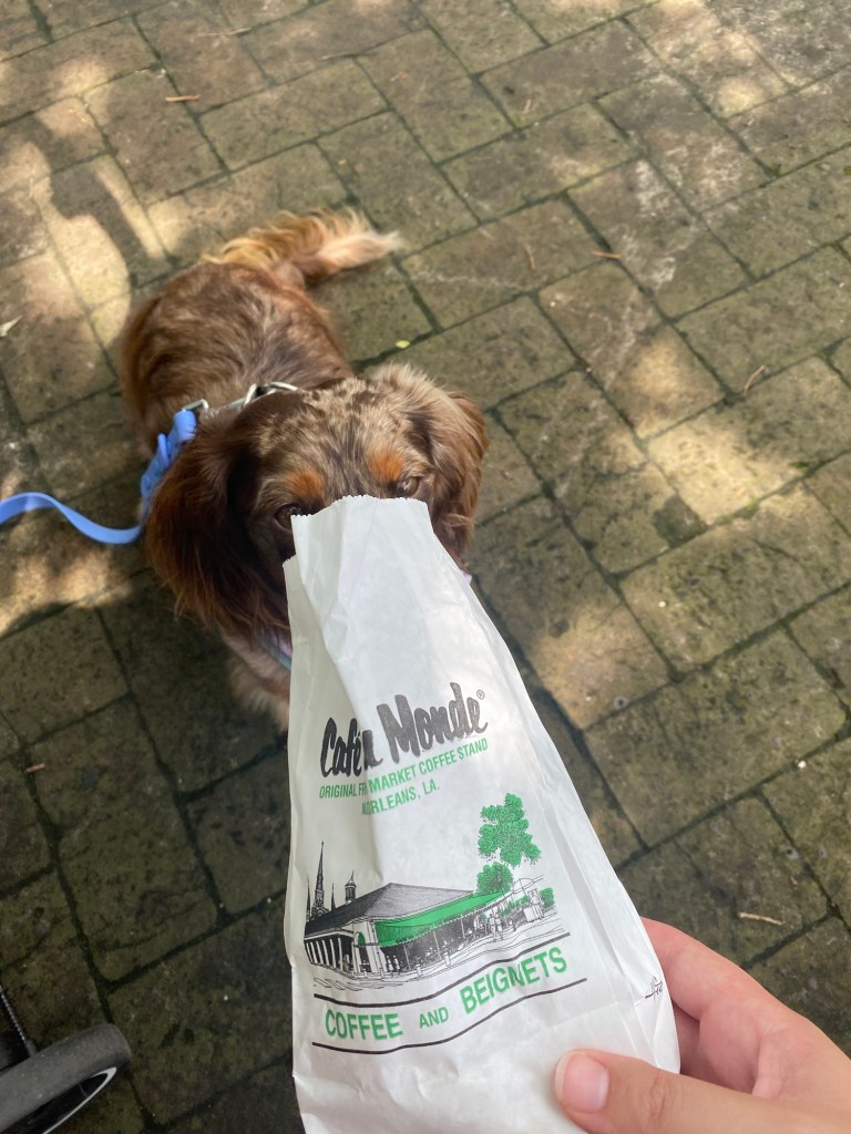 Pro tip: If you’re walking by a restaurant or bar and aren’t sure if they’re dog friendly, just ask them! “Dog friendly” looks different in different places. Up here in New England, the rules are pretty strict. What we experienced in New Orleans was a much more fluid/laid back attitude about dogs. There are a few places we read were explicitly not dog friendly. However, when we walked by and asked, they said “sure! come on in!” This includes a couple of landmark restaurants in the Quarter, some smaller cafes, etc. In most cases, we were there at quieter times and I doubt they’d let us in if it was busy. But this is the most relaxed I’ve seen a city in the U.S. be with its rules on dogs in restaurants.