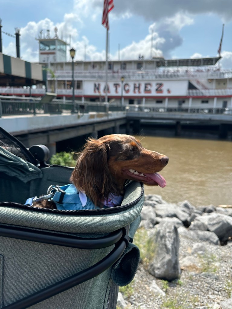 There were a couple of lowlights. For starters, the weather was rough. It rained very hard for extended periods of times each day we were there. Tropical showers are normal, but this was extreme. We still managed even though we got wet. It did keep us from doing some of the more outdoorsy things on our itinerary like Audubon Park and City Bark (which you also need to register for several days in advance). This also made us realize that leafy green space is somewhat limited in the city center/French Quarter. Some of the nicer squares (like Jackson) don’t allow dogs inside the fenced area. Woldenberg Park (along the river, by the Steamboat Natchez) ended up being our favorite green respite close to the hotel. In hindsight, we would have planned better for this. But overall, it was a great time and I’d highly recommend NOLA for a trip with your pup!