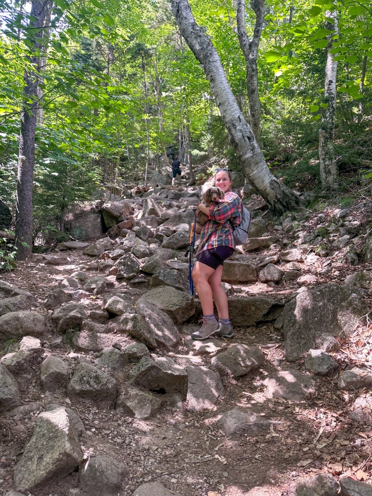 This low boy reached some pretty high places recently. I did my first “real” hike! Before they got a dog, my parents loved to hike the mountains of New Hampshire and Vermont. While they hoped I would be a good hiking companion, my tiny legs proved to be an obstacle. I’m good at walking short distances in the city or at a leisurely pace on trails in the woods, I’m not good at long distances and challenging terrain.