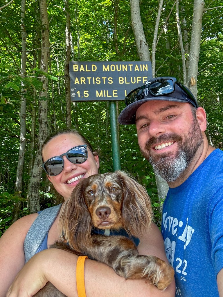 After the Bluff, the hike continues uphill at a relatively steep pitch for a short distance before leveling out and eventually heading back downhill. There’s a spur off to the right which will take you to Bald Mountain and another great viewpoint, but I was way too tired at that point and we didn’t want to push it. So we kept going to the parking lot. Portable water bowls and bags of treats were essential, even on this relatively short hike.